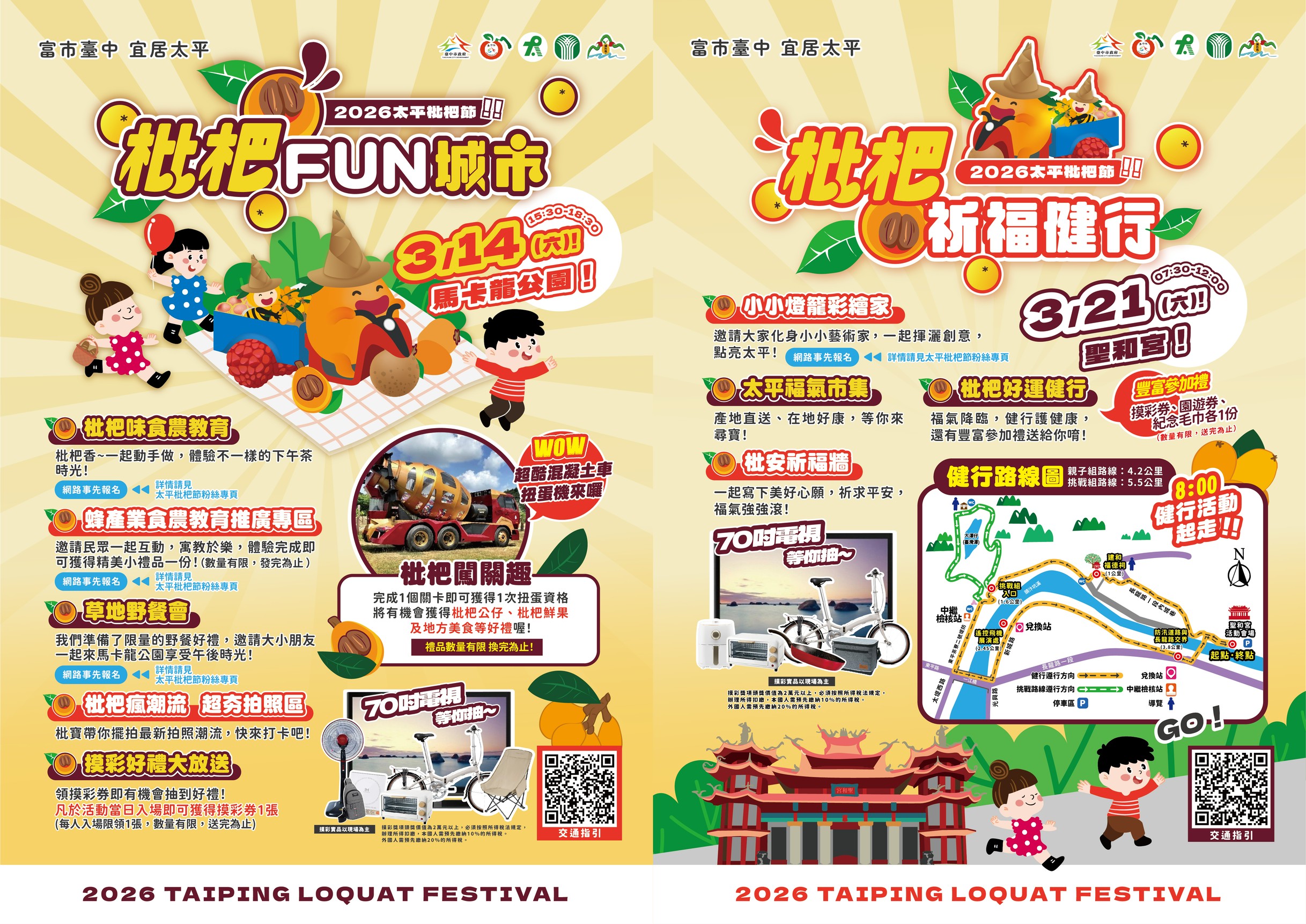 太平區公所定於115年3月21日(星期六)7時30分至12時假本區聖和宮舉辦「2026太平枇杷節」系列活動-「枇杷祈福健行活動」。
