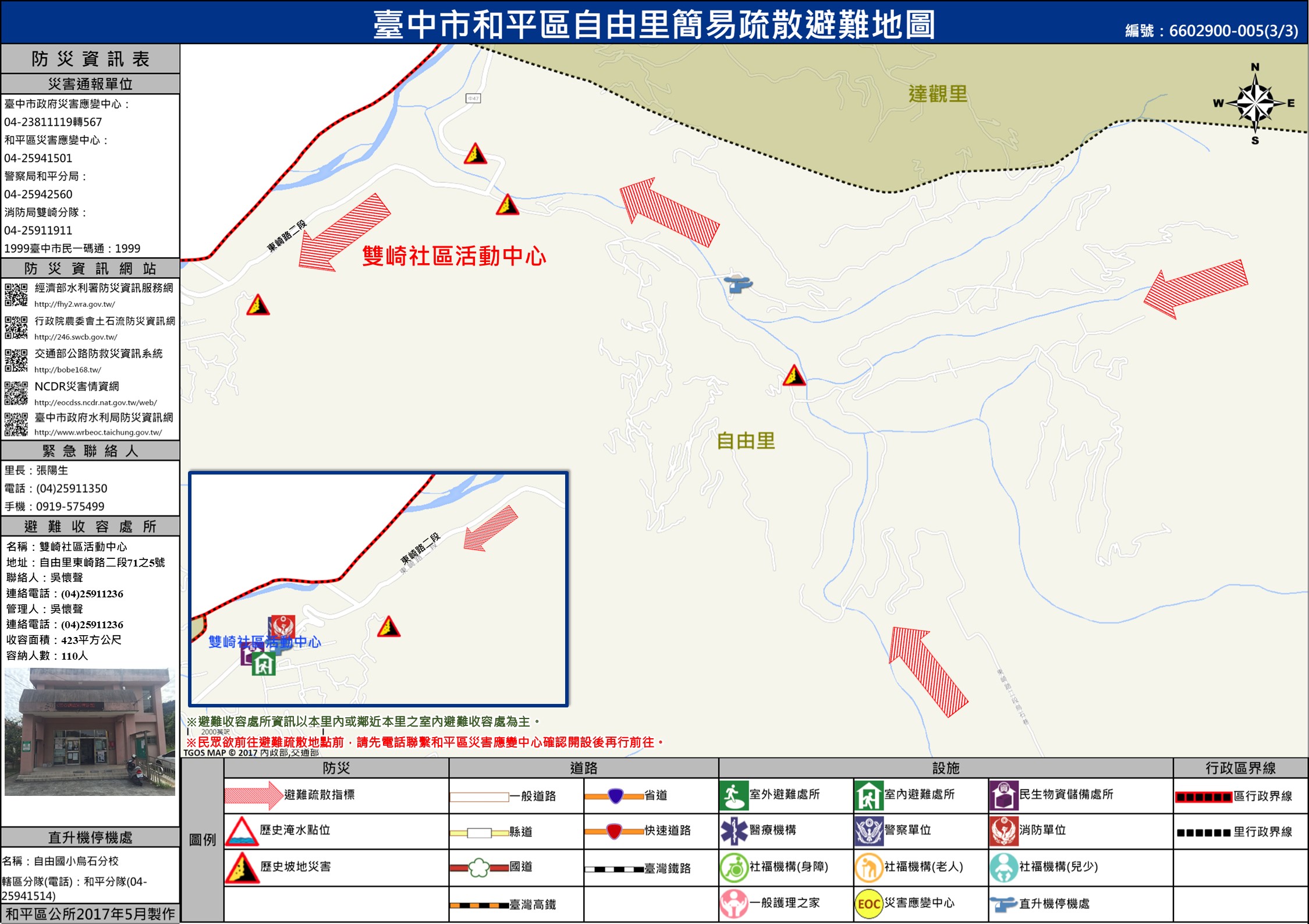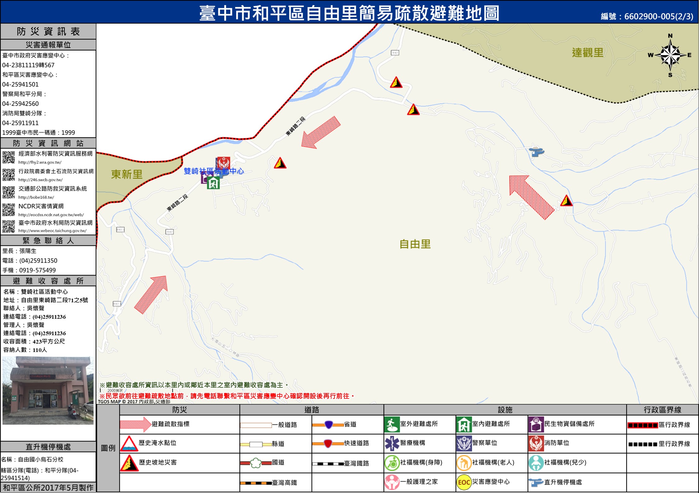 「自由里」避難收容處『雙崎社區活動中心』