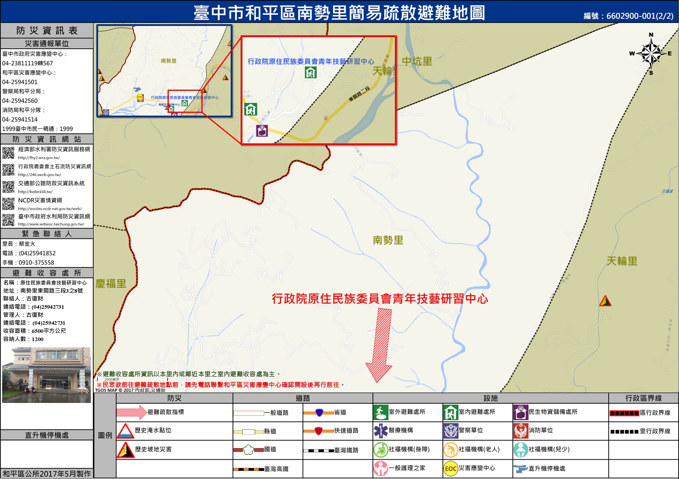 「南勢里」避難收容處包含『南勢社區活動中心、原住民技藝研習中心』