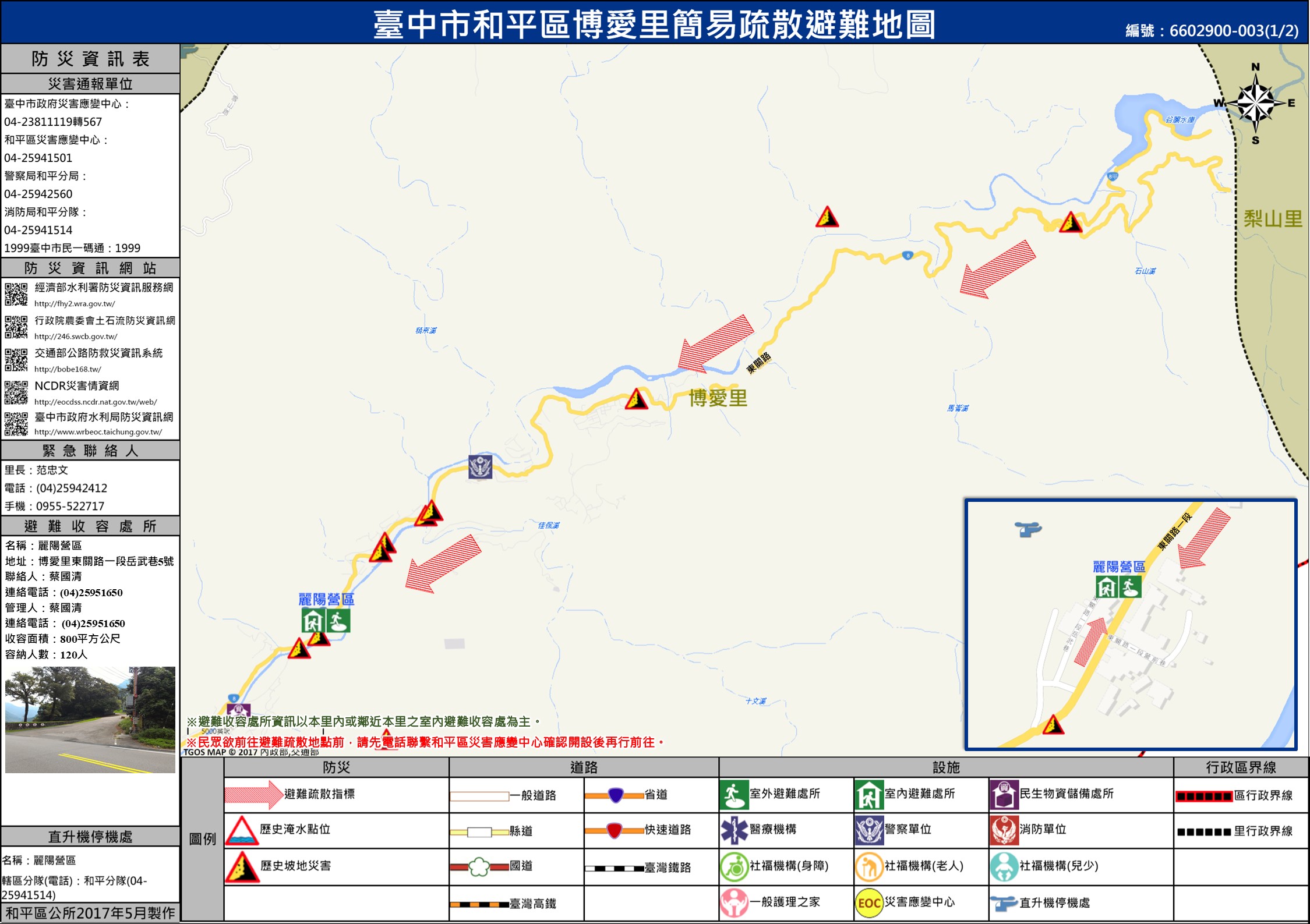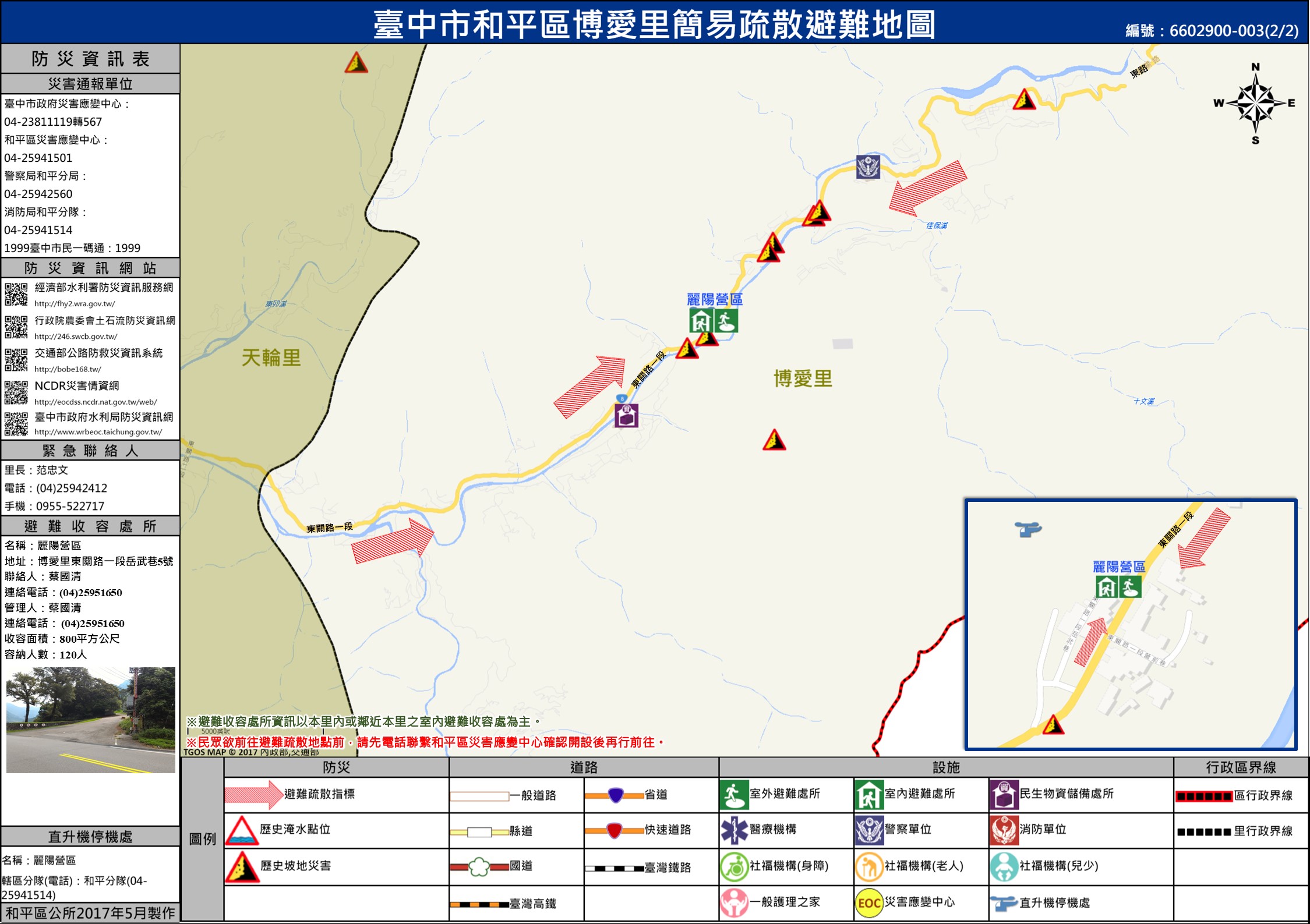 「天輪里」避難收容處包含『南勢社區活動中心、原住民技藝研習中心、麗陽營區』